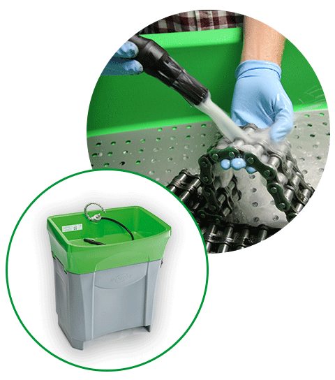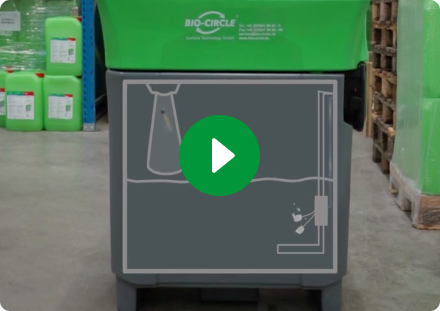 - Die Öle und Fette werden verflüssigt und trennen sich an der Reinigeroberfläche ab, aufgrund der demulgierenden Wirkweise der BIO-CIRCLE Liquids.