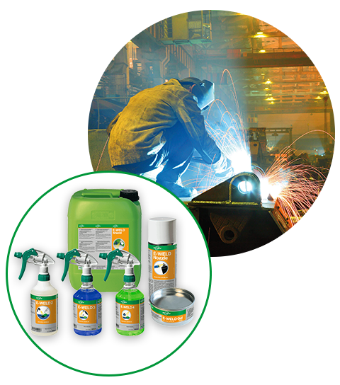 Die E-WELD Produktfamilie bietet moderne Schweiss-Trennmittel, die das Festbrennen von Schweissspritzern beim MIG/MAG-Schweissen sowie beim Laser- und Plasmaschneiden verhindern. Das Besondere: Direkt nach dem Schweissprozess können die Bleche dank der öl- und silikonfreien Formulierung problemlos verzinkt oder lackiert werden. Dies wird unter anderem von der Verzinkerei Herning, Volkswagen AG, SLT Lasertechnik und dem Institut für Korrosionsschutz Dresden bestätigt.