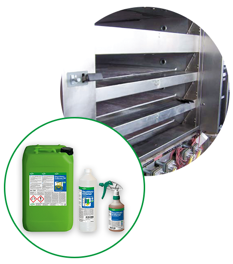 Der RAUCHHARZ-ENTFERNER schaumarm und der RAUCHHARZ-ENTFERNER DB sind optimal für maschinelle Anwendungen, da sie kaum schäumen und bei ca. 60°C effektiv arbeiten. Sie sind ideal für Einzel- und Mehrkammer-Spritzreinigungsanlagen, Rohr- und Wärmetauscher-Reinigungsanlagen sowie Ultraschall- und Tauchreinigungsanlagen.